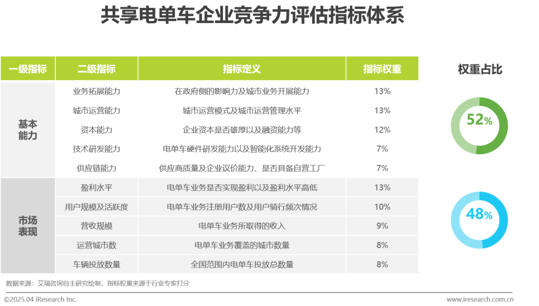 搭建两级指标体系,全方位评价共享电单车企业竞争力情况