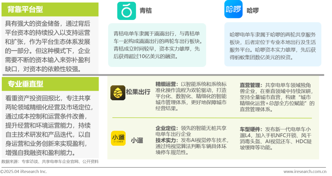 企业持续经营能力确保企业拥有充足动力进行产品创新以满足用户需求。共享电单车行业目前形成“背靠平台型”和“专业垂直型”两种经营模式,两者在资本依赖性、盈利模式、成本控制、市场行为和风险管理等方面存在显著差异。