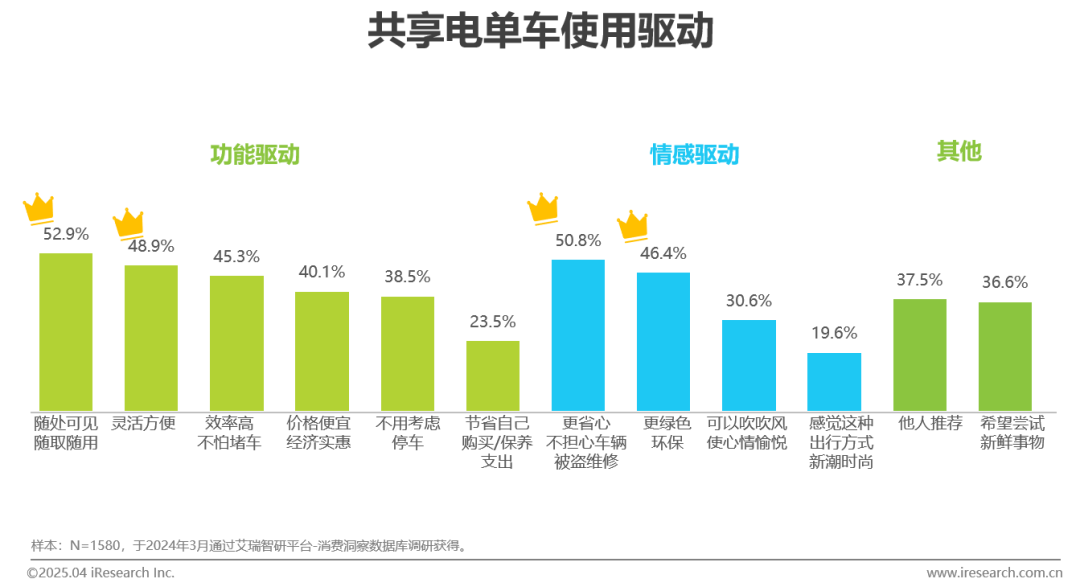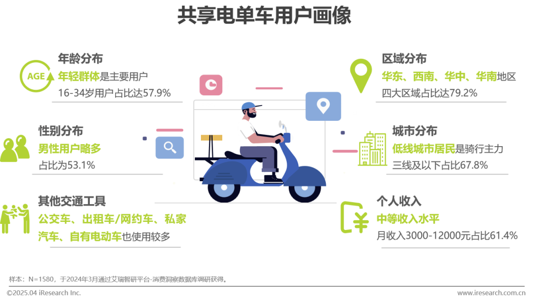 用户调研显示,中低线城市16-34岁的用户群体,已成为共享电单车消费市场的中坚力量。都市青年对于日常通勤、休闲娱乐等多元化出行场景的便捷性需求,为行业发展注入了强劲动力。