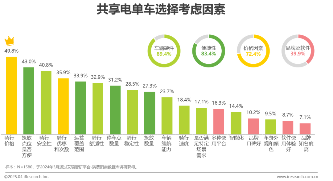 骑行价格是用户最关注的因素,投放点位方便、骑行安全也受到格外关注