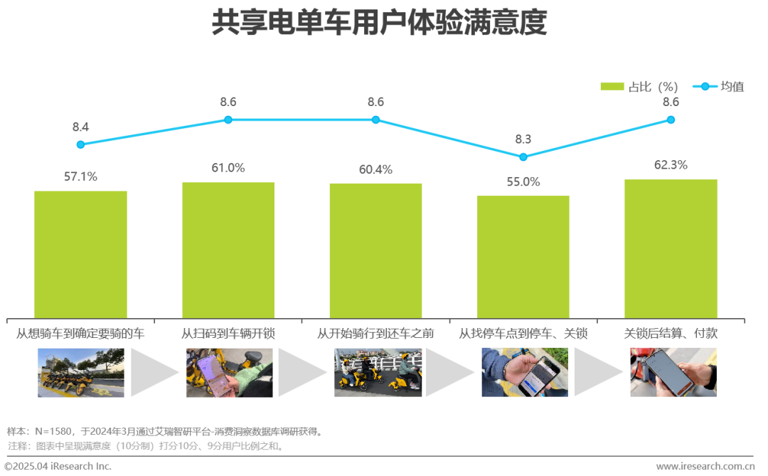 共享电单车用户满意度较高,扫码、骑行、结算付款体验相对更好