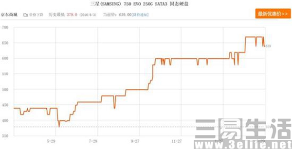 在2016年,因为2D NAND生产线转向3D NAND,所以生产效率下降导致涨价,就拿京东等电商平台DDR4-2400 8G单条为例,售价从2016年8月的290元涨到现在的479元,而250GB的SSD也从去年5月的370元一路涨到640元,涨幅和内存还挺同步的。至于我们查不到价格走势的手机内存、闪存,可能涨幅一点都不比这些低。