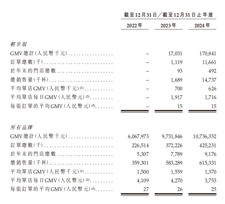截至2024年12月31日,轻享版1.0及茶瀑布总门店数从2023年底的93家,跃升至2024年底的492家,GMV总计达到了1.7亿元,但占比也只有1.6%。