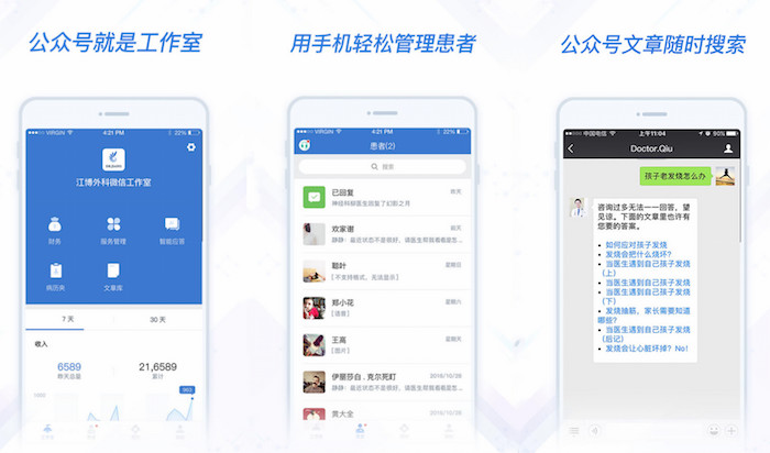 微信给腾讯带来了不错的成绩。根据2017年4月腾讯在“2017中国‘互联网+’数字经济峰会”上提供的数据显示,超过3.8万的医疗机构拥有自己的微信公众号,超过1.1亿的用户在搜索和使用这些公众号。这其中,60%的服务号提供在线就诊以及挂号服务,而35%的服务号则支持微信支付。