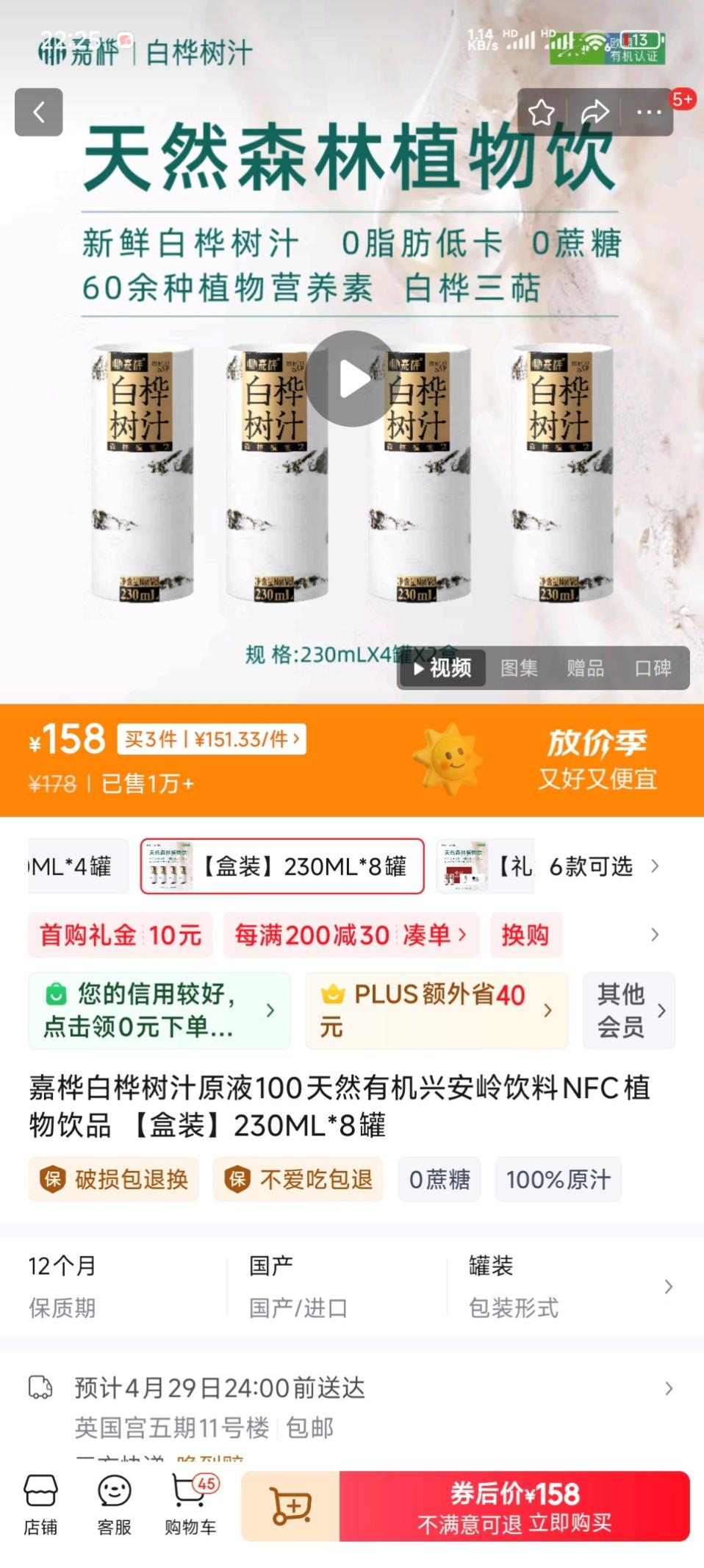 在产品简介中,轻上描述其产品甄选直径20公分以上的成熟白桦树,每年仅有10-15天人工采集期,而每棵树每天只能采集1-1.5kg。总之,没有一滴糖、一滴水,小孩老人放心喝的“液体黄金”“解酒神器”。