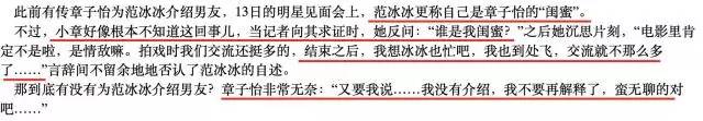 之后的各种宣传活动中,范冰冰还是坚称两个人关系好,先是说自己是章子怡的闺蜜,之后还透露拍摄《非常完美》时,章子怡在得知自己在学英语后,特意送给她一本教材,之后还劝她找个外国男朋友。只是对于这样突如其来的“闺蜜情”,该配合她演出的章子怡却用一次次的否认来选择了视而不见。