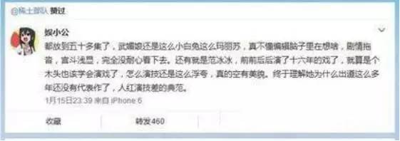 而在前年,由范冰冰主演的玛丽苏大剧《武媚娘传奇》热播时,章子怡还曾不慎“手滑”点赞了一条黑范冰冰演技的微博。如此看来,两个人间的明枪暗箭短时间内绝不会停止,有生之年如果能看到她们“和好”时,大概只有等到下一次再合作的时候吧。