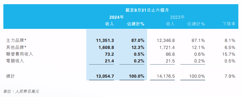 根据2025财年中报,占滔博总营收87%的主力品牌期内下滑8.1%;其他品牌(包括彪马、匡威、范斯、北面、添柏岚、亚瑟士、鬼冢虎、斯凯奇、NBA、李宁、HOKA及凯乐石)营收下滑幅度略低,但占比不超过15%;联营费用收入下滑幅度最大但占比极低;滔搏电子竞技俱乐部(TES)没能为集团实现更多增长,电竞收入贡献几近于无。