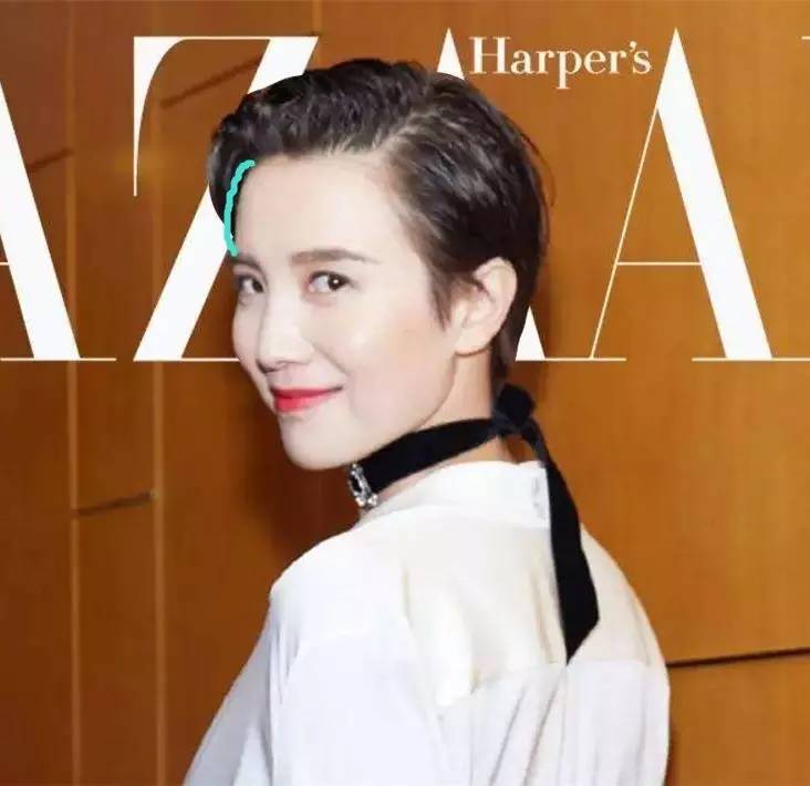 她是非常适合露出额头的造型的,因为她的额头比较宽敞饱满,尤其是黑色发色,符合她的路线和性格。这也就是为什么短发之后总是有人说不适合她