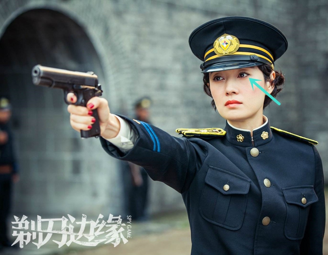 马伊琍也是黑眼球多于白眼球的类型,所以眼神很有杀伤力。这种持枪的姿势还不小心帅到所长了呢