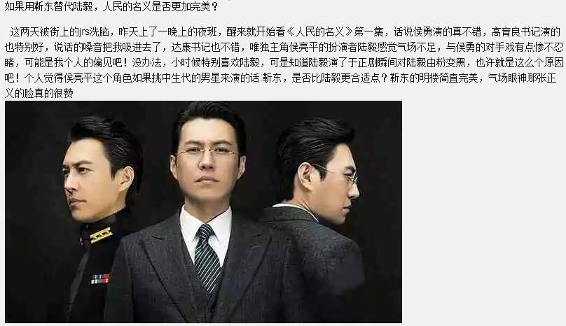 侯亮平这个角色当初有找过靳东,不过因为档期原因靳东没能参演,不少观众都喊话觉得靳东的确非常适合这个角色