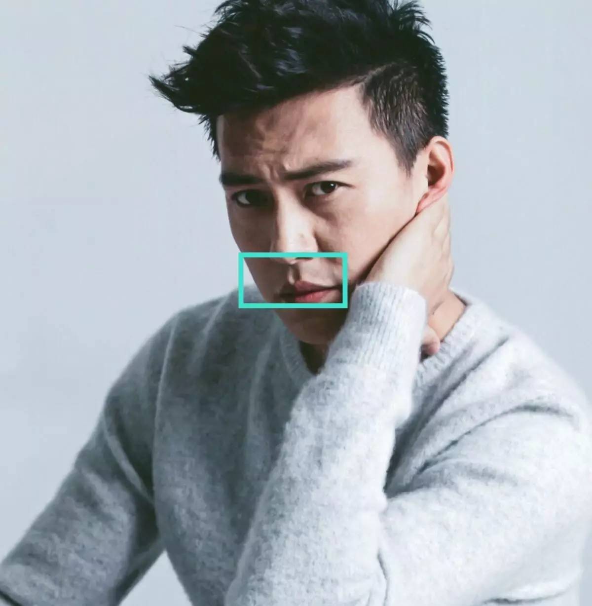 杨洋的人中也是比较长的,正好拉长了下庭的长度,使整个人看起来更有周正感
