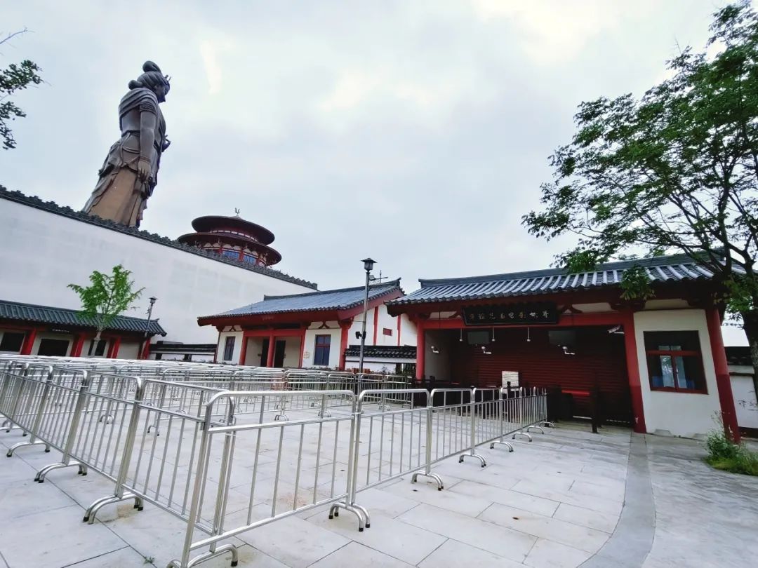 江南风吹皱阳澄湖,黄波翻滚,芦苇飘摇。顶着风,绕行到华谊苏州另一处售票口,这回连扯闲篇的工作人员也见不到了,只见游客服务中心大门紧闭,空无一人。只有一侧高达75米的武则天巨大雕像,高耸着面向园区内。
