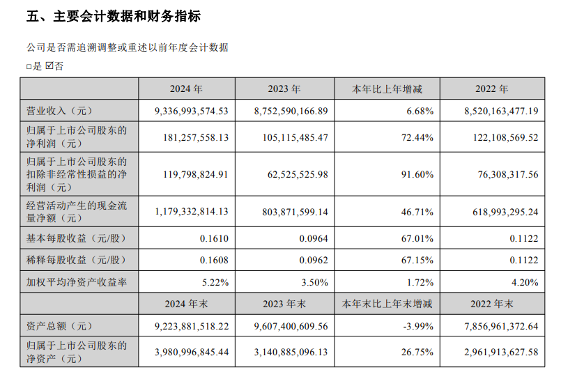 2025年一季度,实现营业收入24.03亿元,同比增长9.53%;实现归属于上市公司股东的净利润3100.81万元,同比增长165.96%。