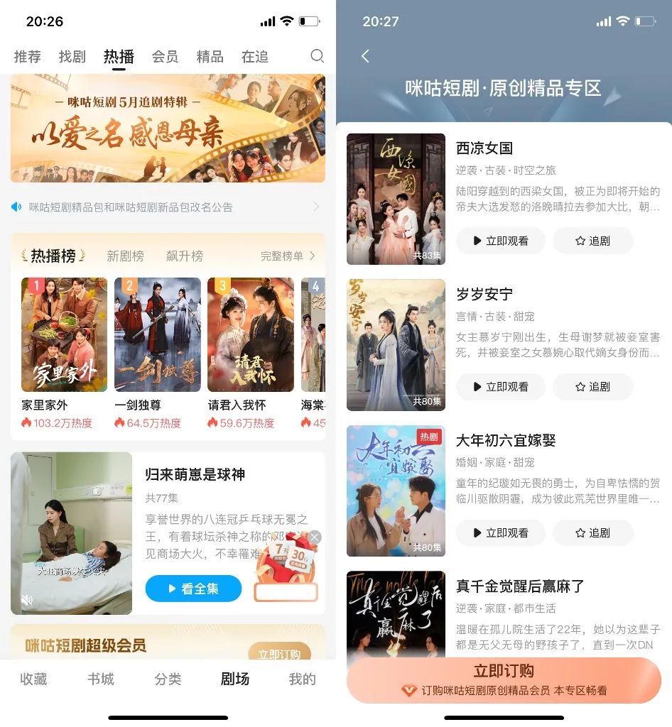 “国企”咪咕阅读近年也在IP市场崭露头角,向长剧输送了《惜花芷》,向短剧输送了“女帝文学”《宫墙厌》。而早在2023年,咪咕便进军短剧赛道,启动“网文+短剧”双轨发展的模式,打造“咪咕短剧”厂牌。