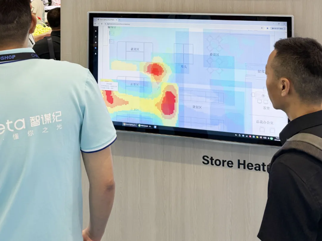 本次展会展现的大数据统计功能也尤为亮眼,AI传感器还可实时监测人流动向,商品热度,及时了解购买意愿,助力商家筛选爆款,优选商品,可根据数据调整店面以及优化库存,进行数字化店铺管理。