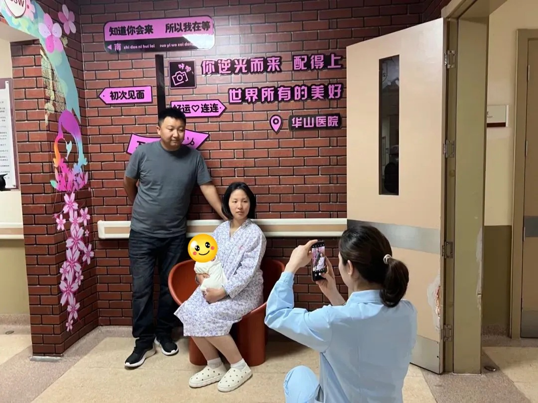分娩对女性而言是伟大而艰辛的过程,尤其是初产妇难免紧张。华山医院在医疗技术保障之外,更加注重人文细节:产房走廊布置了以医院老红楼为灵感的文化墙,供家庭拍照打卡;护士团队全程提供心理疏导,帮助产妇放松情绪,将关爱融入每一个环节。“我们希望妈妈们不仅能安全分娩,还能留下美好的回忆。”妇产科护士长说。