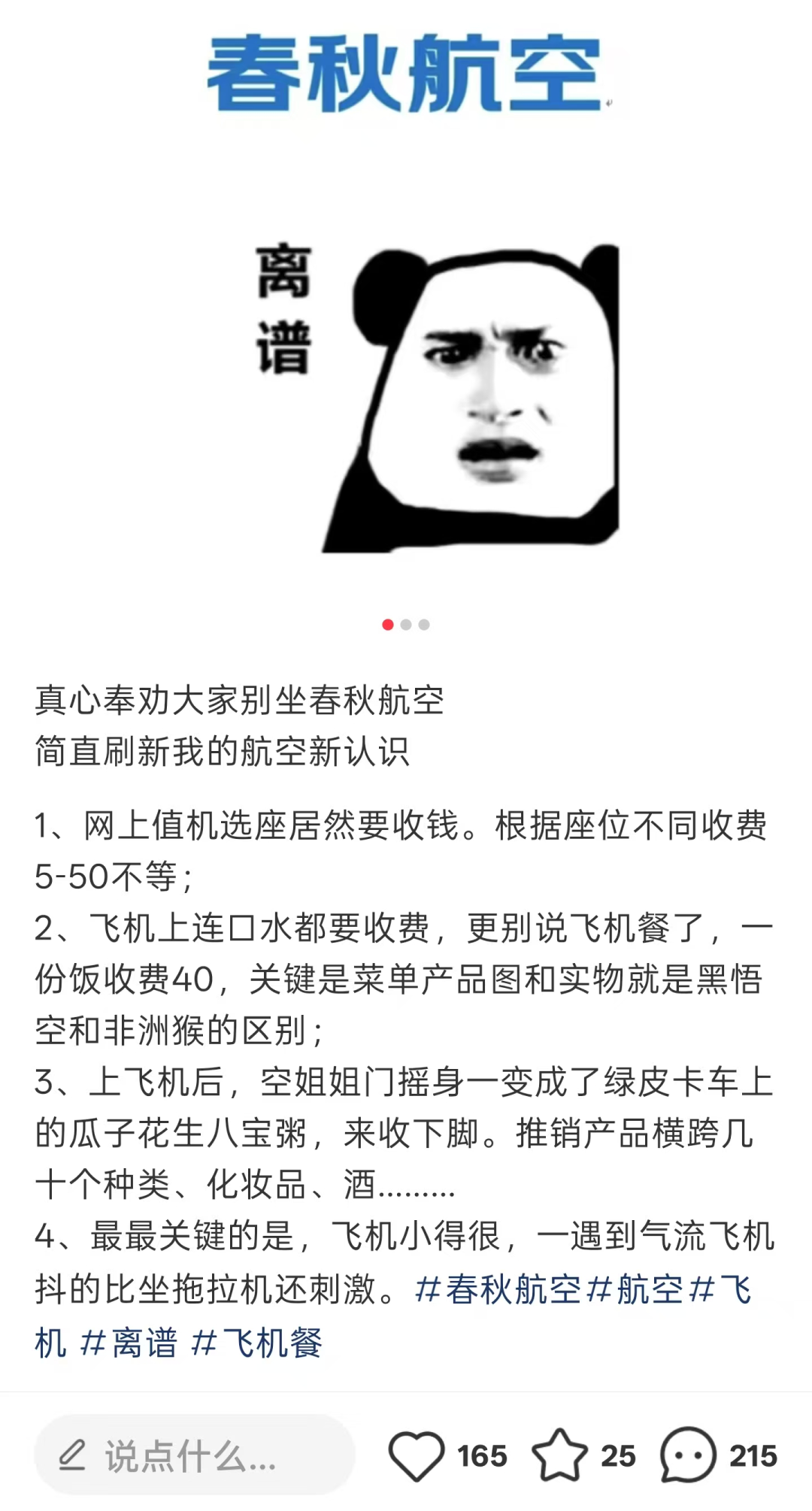 随着春秋航空的受众越来越广,其长期面临的口碑争议也越来越多。