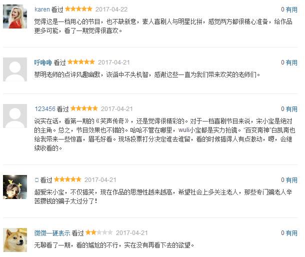 东方卫视近几年持续发力喜剧类综艺,现已打造出《笑傲江湖》、《欢乐喜剧人》、《笑傲帮》、《笑星闯地球》、《金星秀》、《今晚80后脱口秀》、《今夜百乐门》加上新推出《笑声传奇》等众多喜剧节目,形成一个强大的喜剧类综艺矩阵。但《欢乐喜剧人》第三季遭遇“滑铁卢”,不少观众粉丝大失所望,而《笑声传奇》能否顶住压力,再创佳绩,让我们拭目以待。