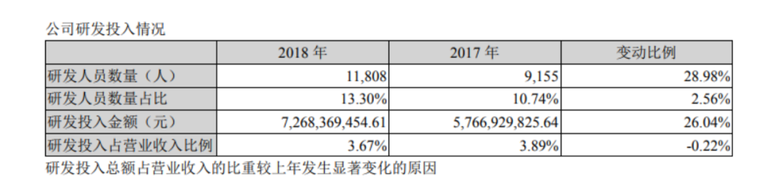 这一指标常用来形容企业对科技创新的重视度和对战略性业务的投入强度,格力电器研发投入的高峰是在2018年,这一年研发投入达到72.7亿元,同比增长了26%;不过,下一年研发投入就下降了17.3%至60.1亿元。