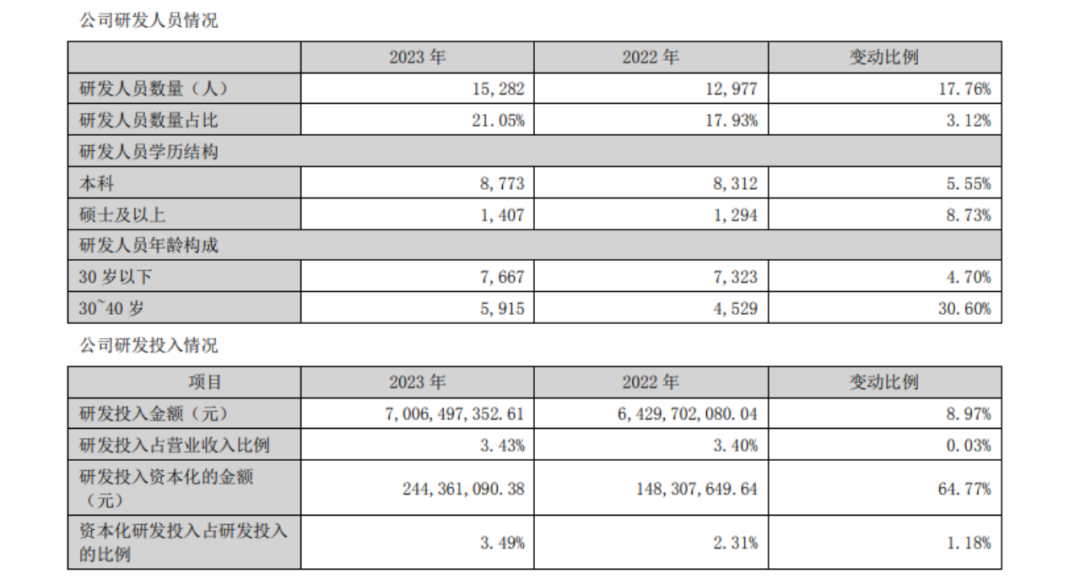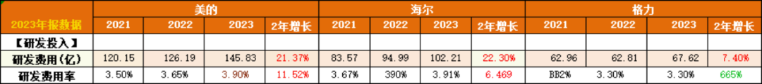 这种状况在近几年有一定改善,到了2023年的时候,格力的研发来到70亿。