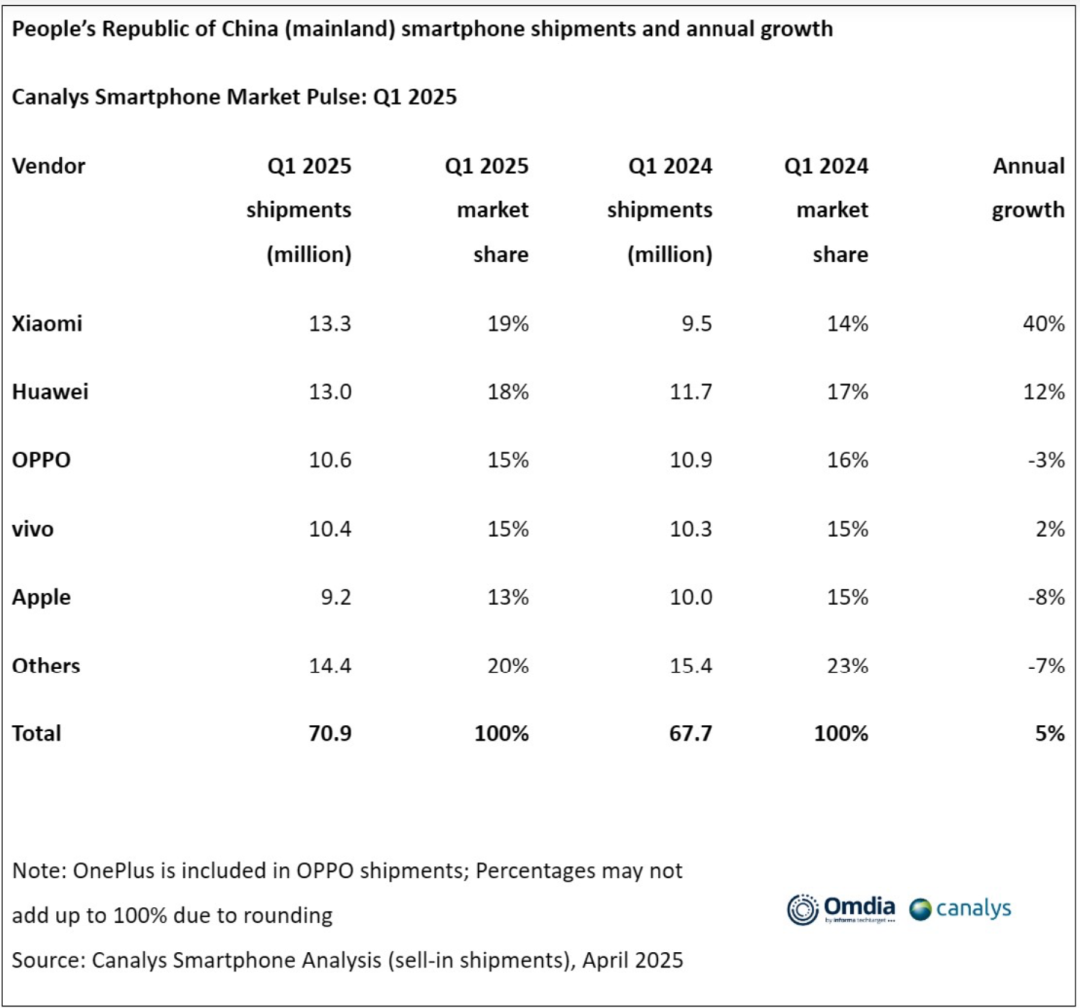 今年第一季度,在Counterpoint的统计中,荣耀以13.7%的市占率排第六,出货量同比下滑12.8%。而在IDC和Canalys的统计中,荣耀跌出前五,被归入“Others”阵营。