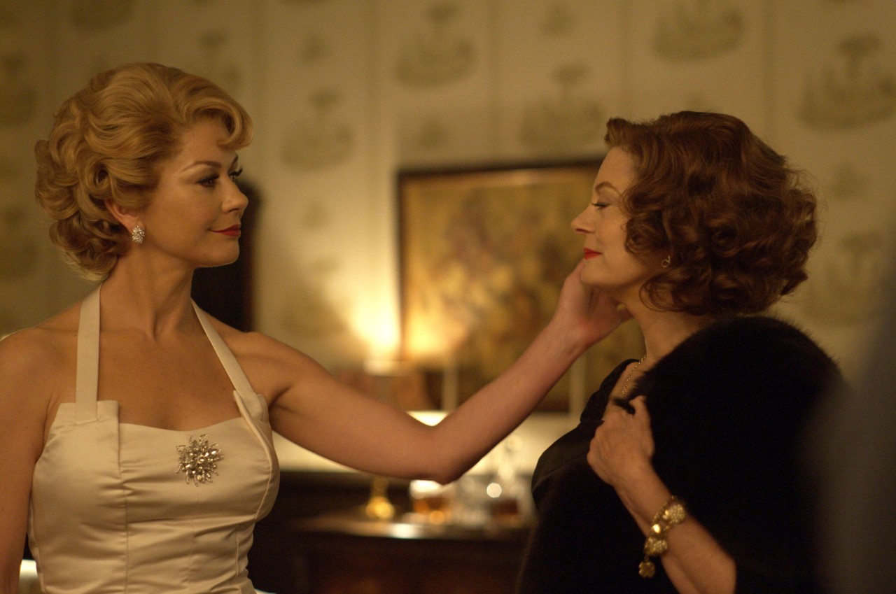 在《宿敌》里,苏珊·萨兰登简直就是贝蒂·戴维斯的再生,尤其当她画上《兰闺惊变》里的妆容时,完完全全让人忘记了是有她人在扮演贝蒂·戴维斯,仿佛就是贝蒂·戴维斯本人在出演。