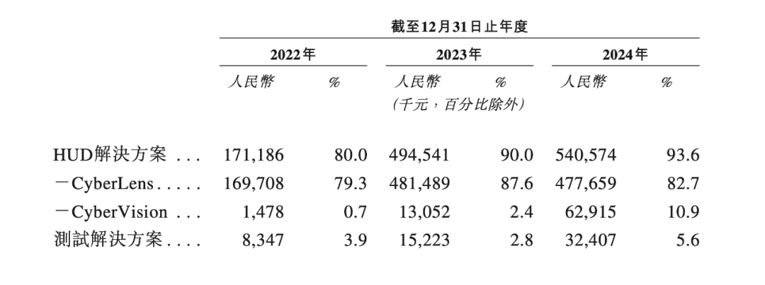 招股书显示,泽景的HUD解决方案销量分别约17.57万、53.46万、62.46万套,收入占比一路从80.0%上涨至93.6%。其中,泽景的CyberLens(W-HUD)截至2024年底已获得65个车型定点项目,已在51款车型上应用。报告期内,来自该部分的销量分别约17.48万、53.08万、57.06万套,每套平均售价为970.9元、907.0元、837.1元,期内收入分别约1.70亿、4.81亿、4.78亿元,营收占别分别为79.3%、87.6%、82.7%,呈现增长放缓趋势。