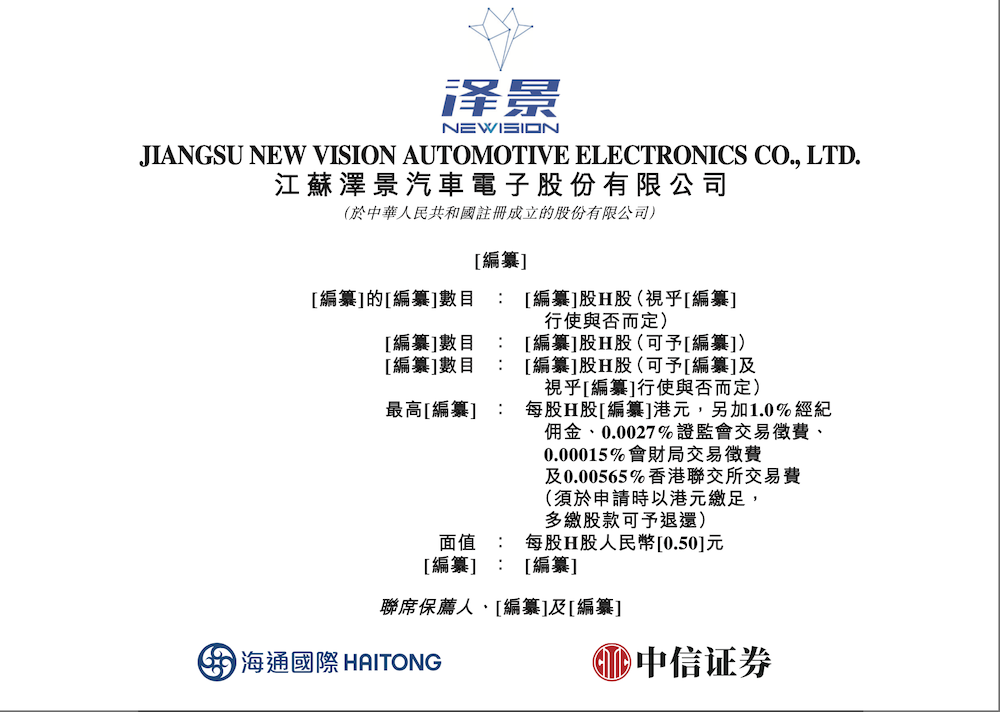 车东西5月14日消息,日前,江苏泽景汽车电子股份有限公司(泽景电子)正式向港交所递交上市申请,海通国际、中信证券为其联席保荐人。