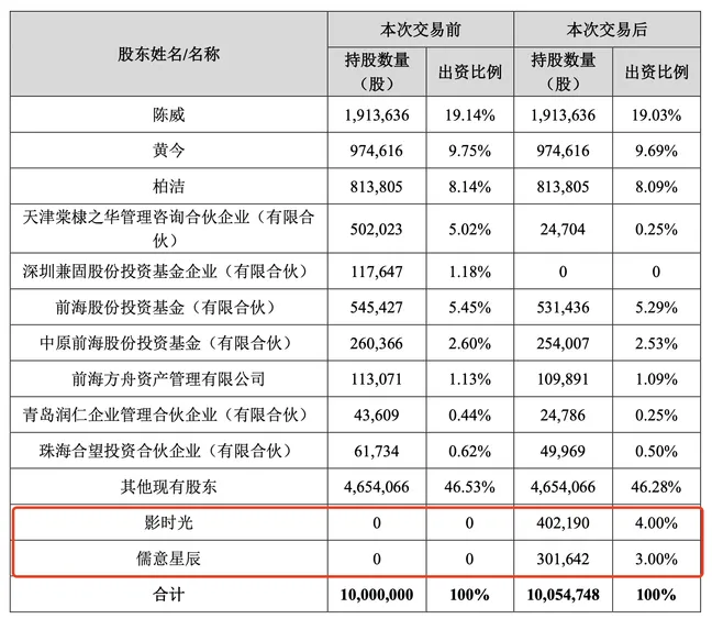 其中,在原有股份上,影时光拟以6898.97万元认购3.69%的股份,儒意星辰拟以5174.23万元认购2.77%的股份。而在新增股权上,影时光拟以1329.6万元购得乐自天成0.31%的股权,儒意星辰拟以997.2万元购得0.23%的股权,双方合计投资总额约1.44亿元。按此推算,若以新增注册资本金额计,乐自天成对应估值约为42.9亿元,而若以股权转让的估值计,乐自天成的对应估值则约为18.7亿元。