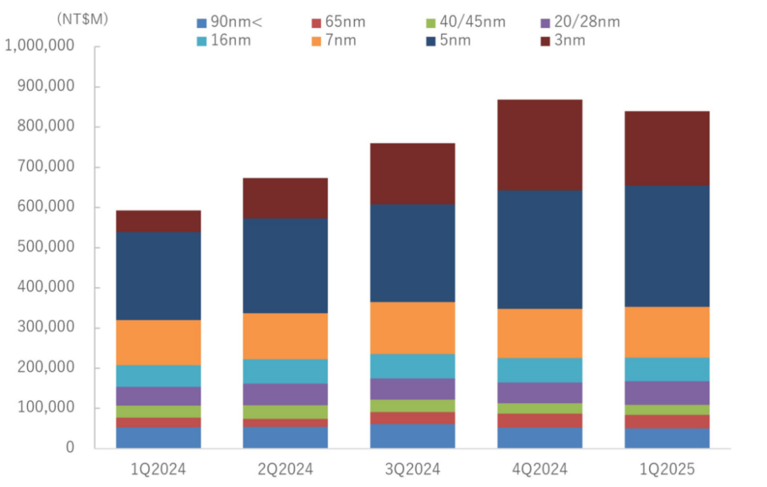 从图中可以看出,7nm、5nm、3nm等尖端工艺的销售额都在增长,而该公司的优势在于其在这些领域的市场近乎垄断。