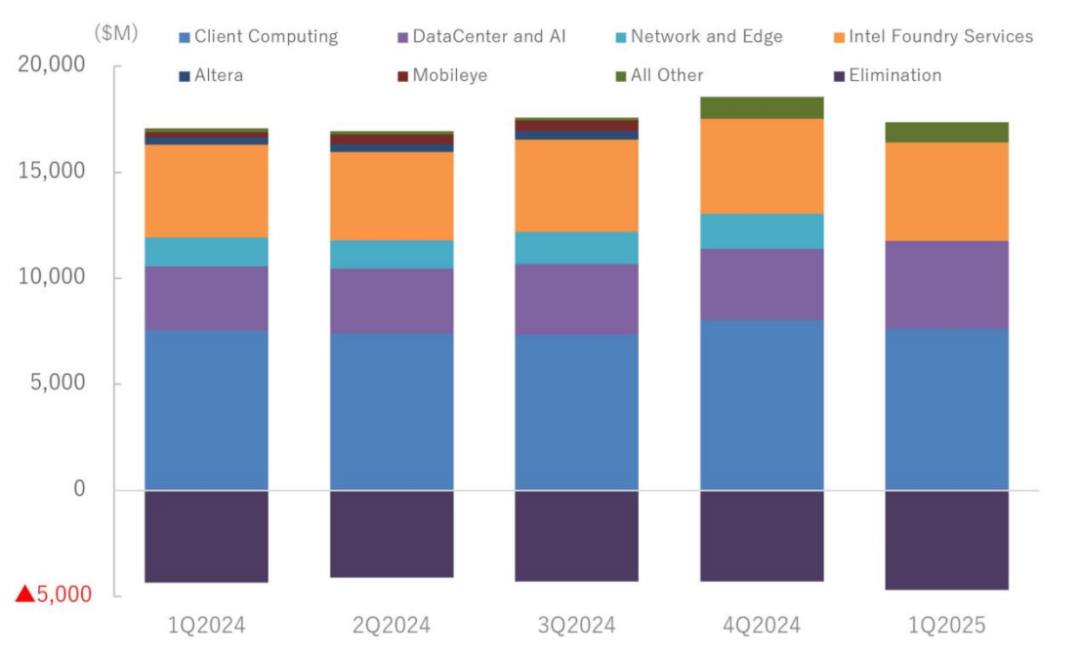 英特尔2025年1-3月季度的销售额与去年同期相比下降了0.4%。结果比去年略有下降。尤其是数据中心、人工智能领域以及原本有望增长的晶圆代工领域,增长却表现迟缓,是一个重大问题。