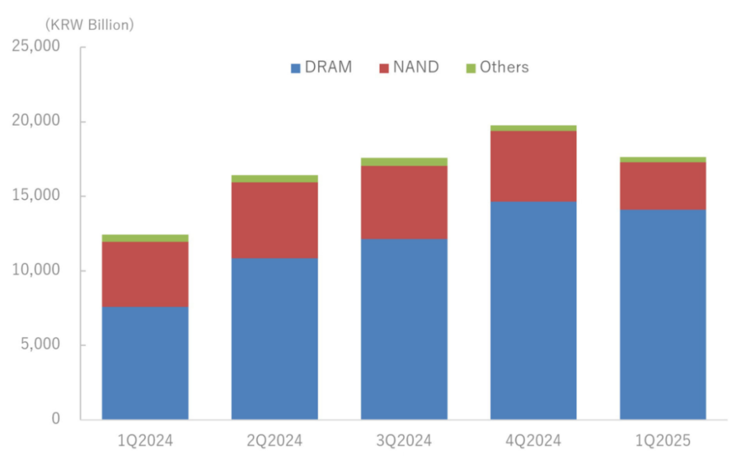 SK海力士2025年1-3月销售额预计较去年同期增长41.9%。虽然受季节性因素影响,销售额较上一季度有所下降,但实际业绩却远远超过了内存市场的增长率。这其中最大的因素就是HBM领先于其他公司取得了成绩,成为“赢家”之一。