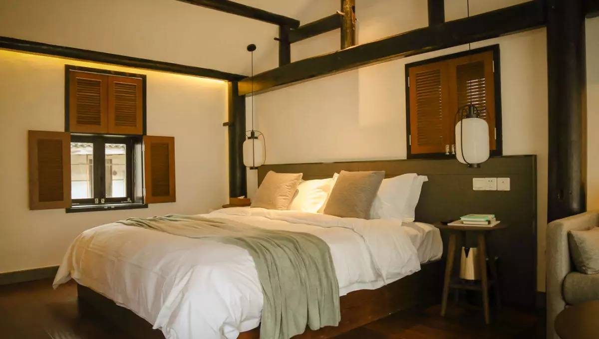 空间设计及文化呈现均汲取当地特色文化,所有的房间命名都别有深意:本安、定安、文木、松壹……这些名字赋予了精心设计的房间以文化内涵,同时又以乡间不可多得的悠闲气息留你多住几日。