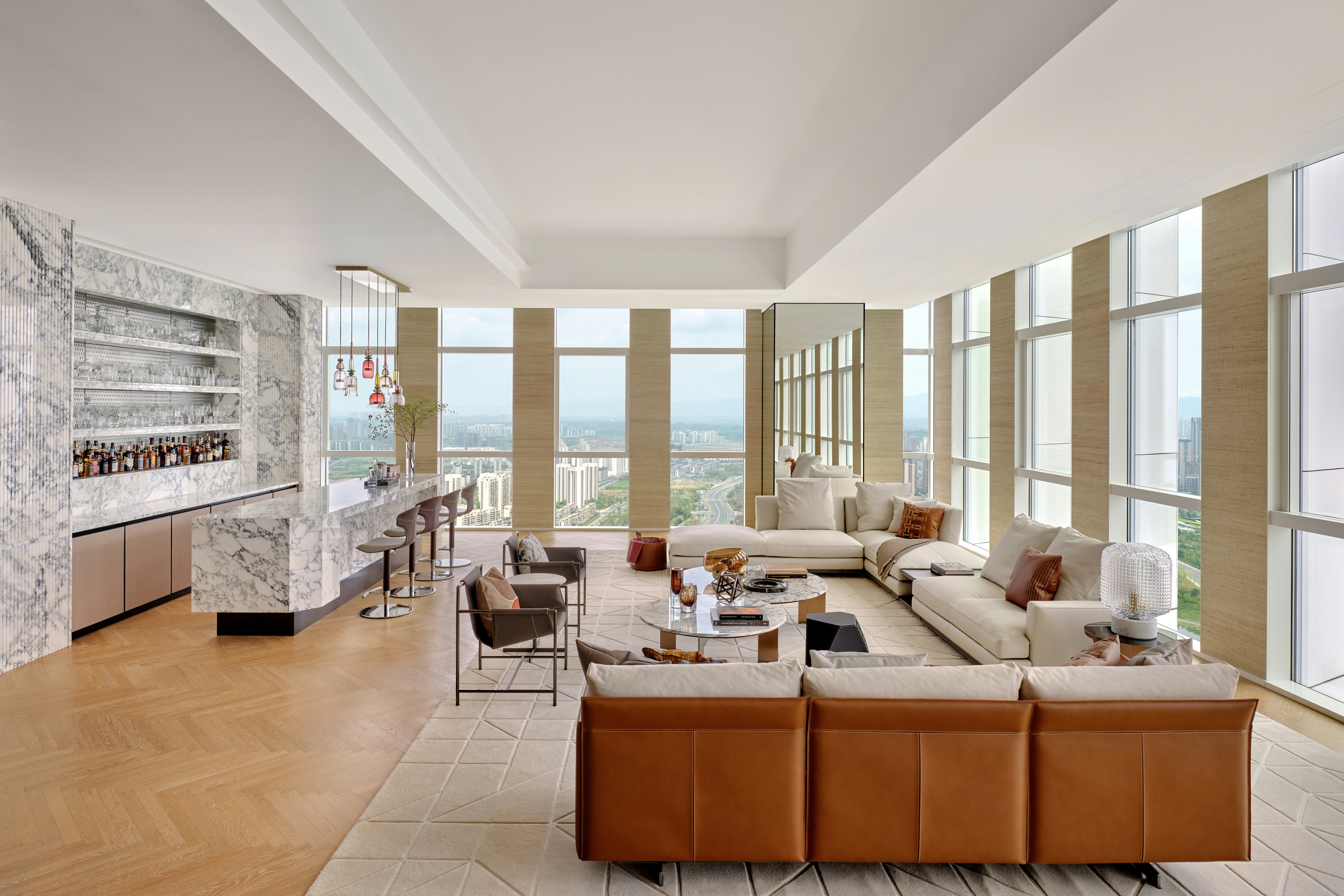 LACADIERE御用设计大师陈建中将牧马山蔚蓝卡地亚传世别墅的理念,与天际的国际化生活相结合,营造出别具一格的仪式感与空中墅居体验。650平一层一户、325平半层一户,每一寸空间皆将墅居理念升华至云端之境。新加坡PLD灯光设计更让空间沉淀出故事,宛如无声的奢华宣言,令“天览”的每一处细节都美不胜收。而高标准、高配置、高品质与高审美的蔚蓝精装,以现代主义风格为基底,缔造奢华与品位兼具的美学空间。
