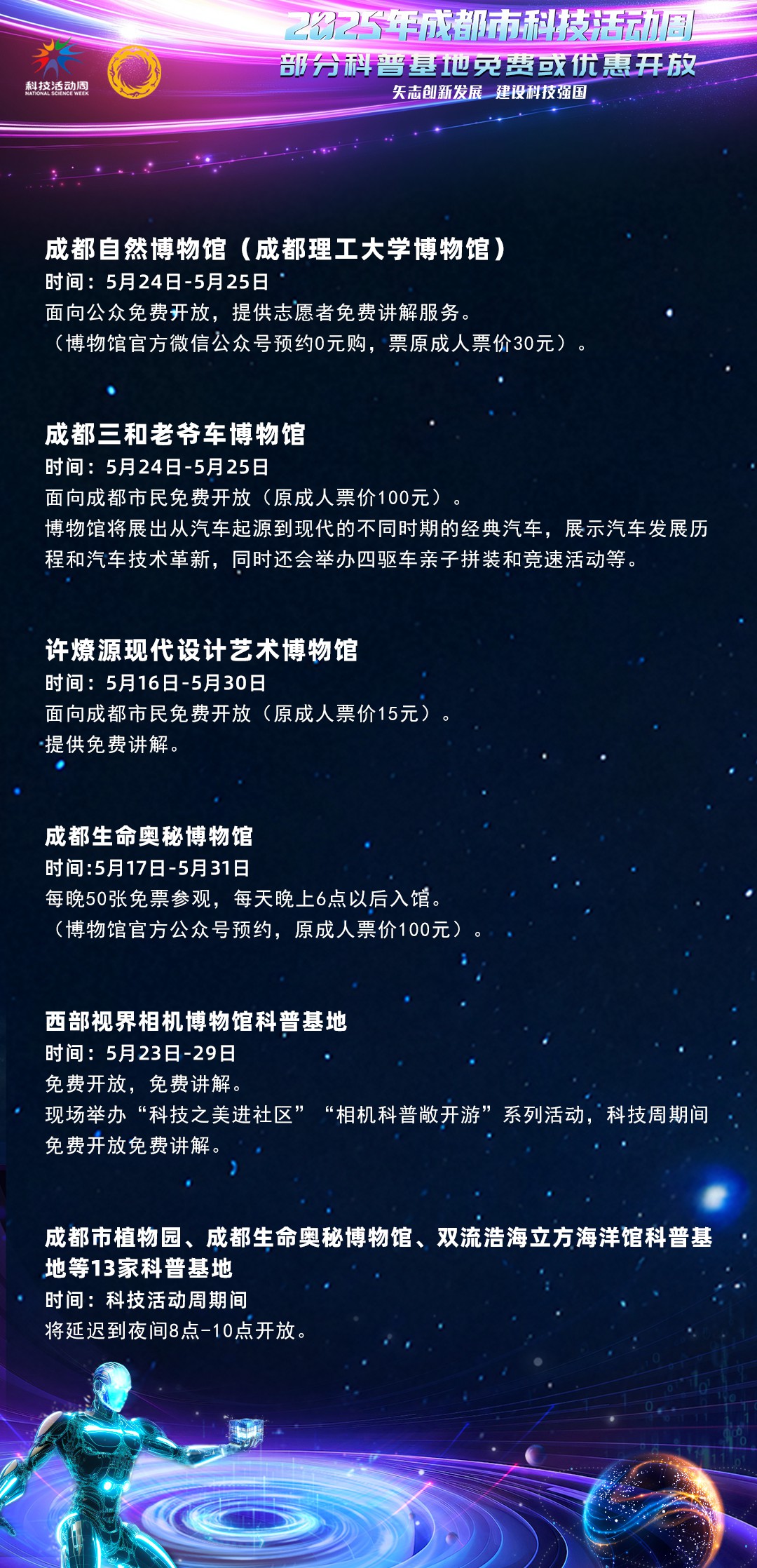 科普惠民“零距离”,在科技活动周期间,全市多个科普基地将免费或优惠开放。