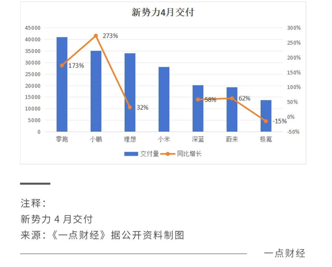 在新的“王牌”还待成长出来前,极氪不可避免地掉了队:今年四月,极氪品牌交付量13727辆,同比下降15%,环比下降11%,是新势力中少有的出现负增长的品牌。