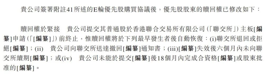 根据招股书中的相关条款,一旦IPO未能在18个月内完成,或者申请被退回、撤回,优先股持有人将有权要求公司进行赎回。
