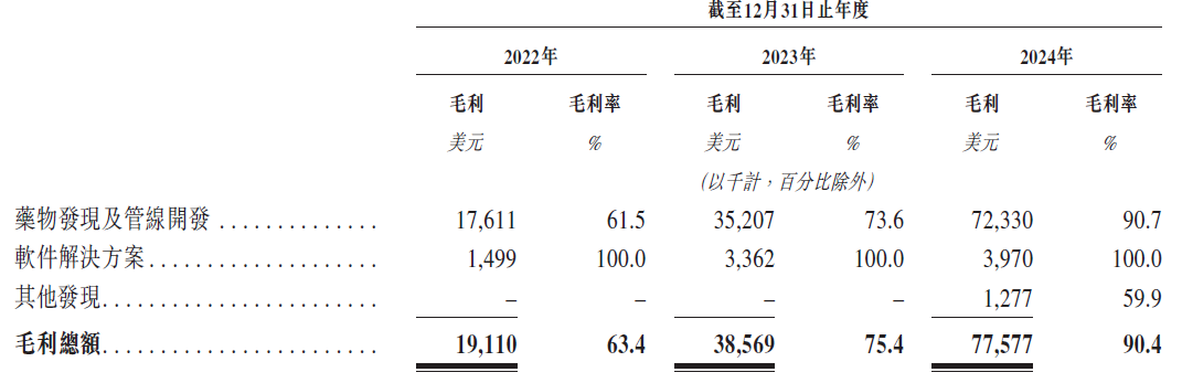 同期,公司的盈利能力逐步增强,2022至2024年毛利率分别为63.4%、75.4%、90.4%。对此,公司解释称为里程碑付款增加。