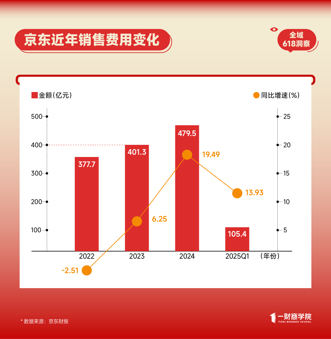 这种大手笔的投入也体现在财报上,2024年京东的销售费用同比增加19.79%,2023年同比增加6.25%,2022年同比减少2.51%。2025年一季度京东销售费用继续以13.93%的速度增长。一季度京东外卖的补贴费用并不包含在内,2025年一季度京东包括外卖业务在内的新业务经营费用为24.9亿元,同比增长65.3%,高频的外卖业务同样可以成为京东为主站引流的工具。