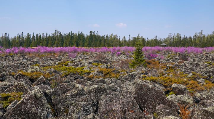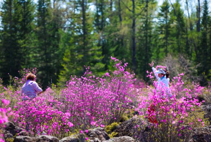 五月的小兴安岭春意盎然,在伊春森工红星林业局公司红星火山地质公园内,兴安杜鹃迎来最佳观赏期。近日,随着第二届伊春·丰林杜鹃花观赏季活动启动,这片独特的火山岩地貌与粉紫色花海交织的奇观,吸引省内外游客慕名而至,成为伊春春日生态旅游的亮点。