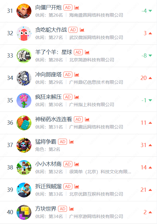 排名情况虽然有波动,但作为休闲小游戏,整体表现突出。从侧面反映出游戏本身具备一定吸引力,可能玩法新颖、趣味性强,能通过口碑传播等方式吸引用户。但排名存在波动,可能是因投放量有限,无法持续稳定地吸引新用户,导致人气起伏。