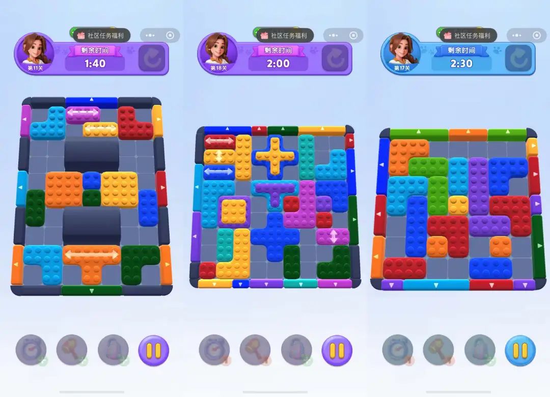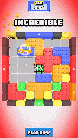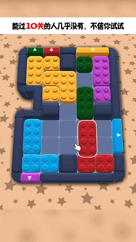 关卡体验分阶段,初期类似不限时烧脑益智游戏,玩家要找破局点;中期是 “华容道” 循环,利用通路移出更多砖块并解开关键障碍;后期解开关键障碍物后,进入和时间赛跑的冲刺阶段。