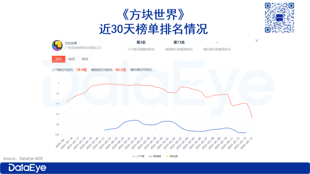 《方块世界》人气榜最好的成绩为第3名,畅销榜最好成绩为第73名,近7天以来人气榜排名波动较大。