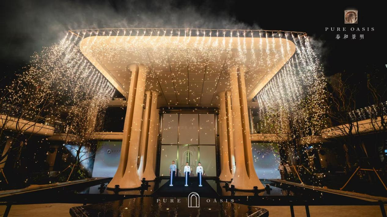 绚烂烟火点亮约9米高海派门庭,特邀国际奢线品牌GUCCI时尚秀导指导演绎,一场湖山间的海派风尚大秀。百米穹宇飞焰腾空湖山,在流光溢彩的视觉盛宴中,拉开了崭新洋房时代的实景序幕。