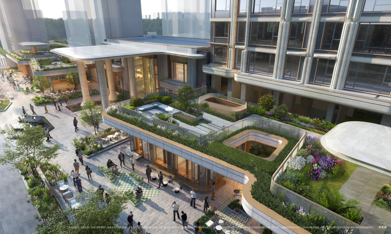 ①台地上盖——抬高4米的空间革命,约5000㎡空中花园体系,合肥首创全台地景观。约1000㎡屋顶甲板,倾赏湖山。