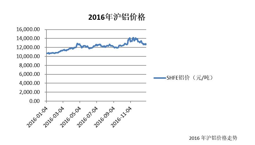 2015年铝价跌至历史较低水平,电解铝行业亏损严重,迫使行业发起减产、去库存的保价行动。受此影响,整个2016年铝价自1月13日跌至10500元/吨后开始复苏,年内最高涨幅达41.43%,截止到2016年末涨幅也达21.48%。
