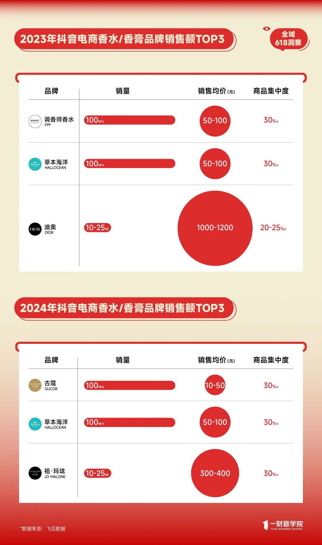 值得注意的是,2024年销售额TOP1古蔻在2023年还只是位居第12名的品牌,品牌草本海洋则连续两年稳居抖音电商香水/香膏TOP2,品牌FPF虽在2024年掉出了TOP3,但销售额也突破了1亿元。