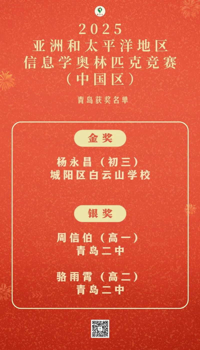 近日,2025亚洲和太平洋地区信息学奥林匹克竞赛(Asia-Pacific Informatics Olympiad, 简称APIO2025)中国区活动举行,青岛选手获得1金2银,金银牌获奖人数全省第一。