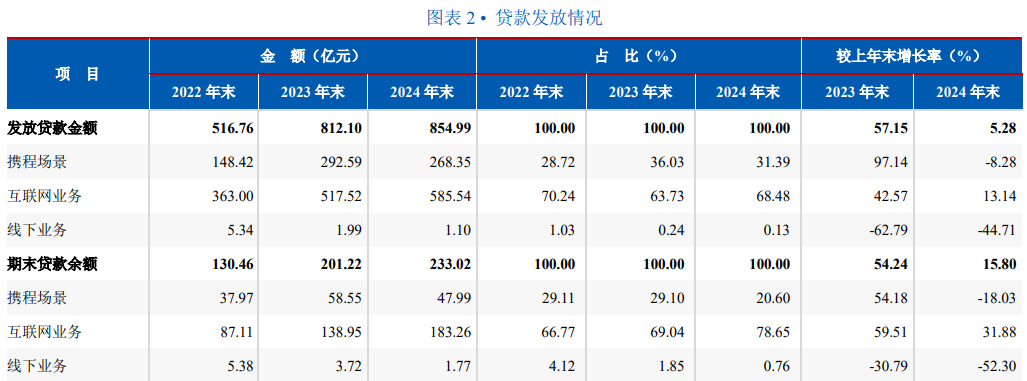 公开信息显示,尚诚消金的贷款业务按照渠道划分可分为股东方携程场景业务、互联网业务和线下业务。